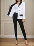 2025 Black And White Two-piece Pants Set, Casual Double Row Button Front Suit Jacket And Straight Leg Pants, Fashionable Women's Clothing