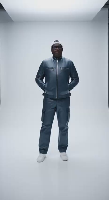 - Premium Korean-style men’s leather two-piece set (Jacket + Pants)
