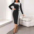 Round Neck Collar Button Long Sleeve Narrow Irregular Polka Dot Print Dress