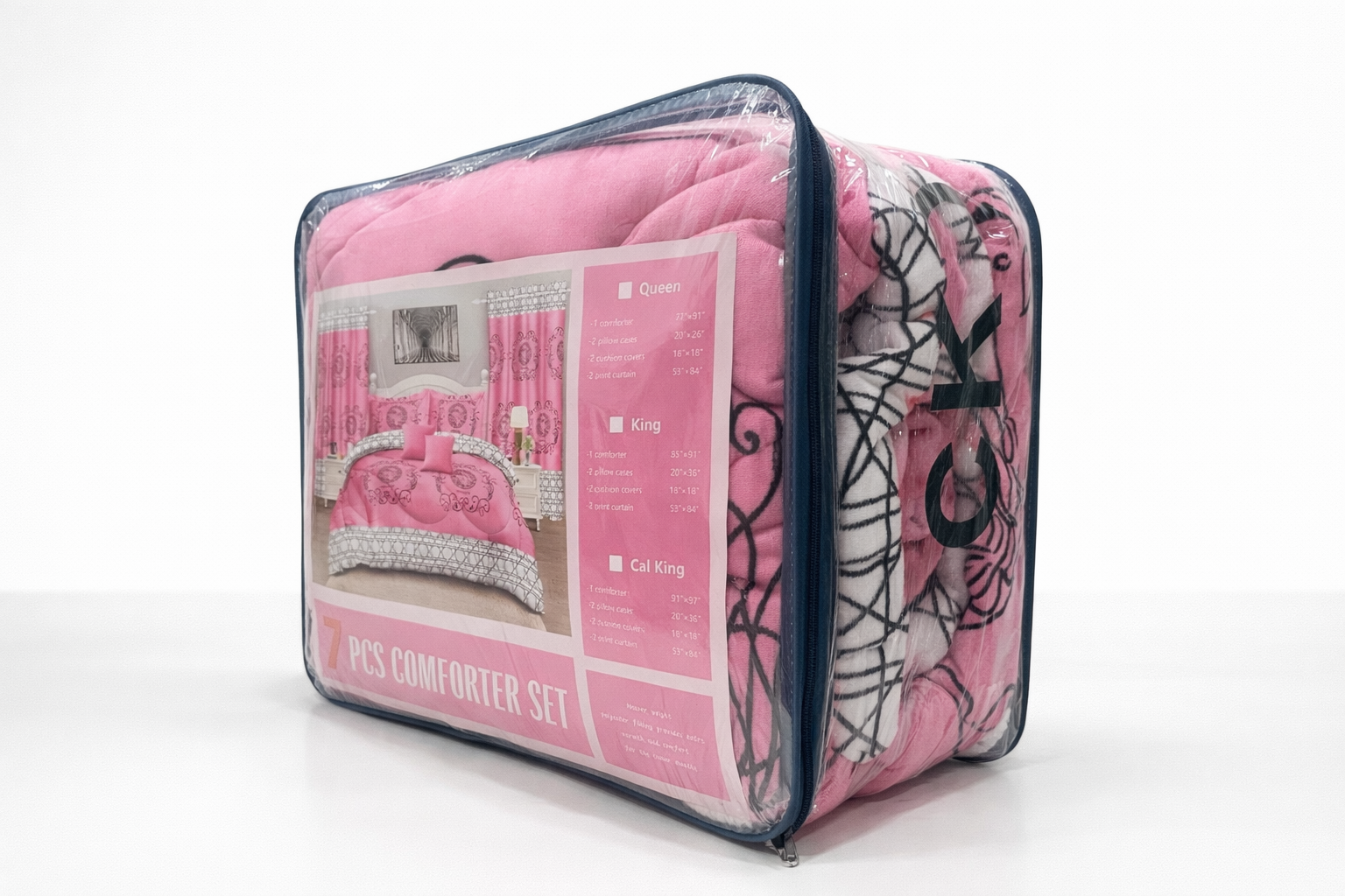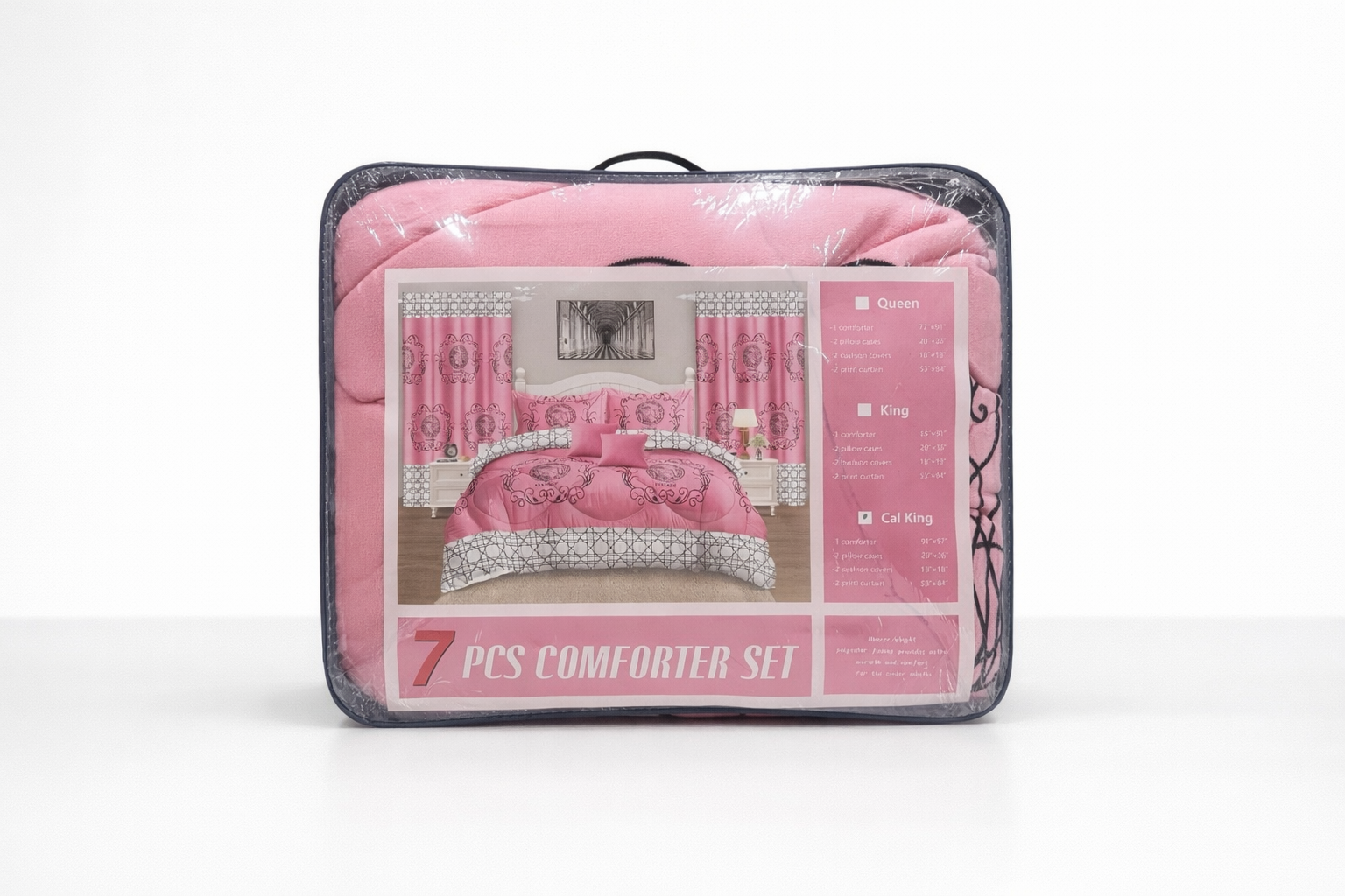 Transform your bedroom into a bright, elegant sanctuary with this 7-Piece Luxury Comforter Set, featuring a beautifully coordinated design in a soft pink color palette with intricate embroidered patterns. This complete bedding set includes everything you need to create a stylish, hotel-quality look—perfect for master bedrooms, guest rooms, or gifting.
