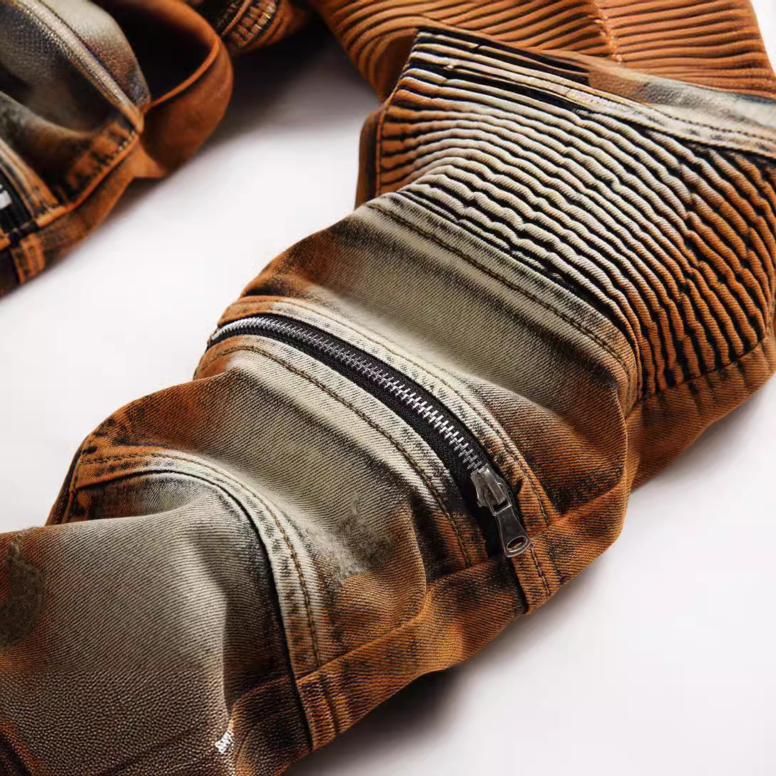 Men’s Orange Denim Cropped Skinny Jeans – Tapered Fit Cotton Pants